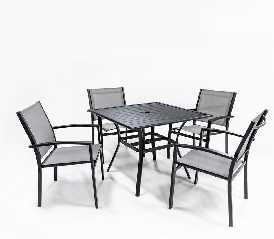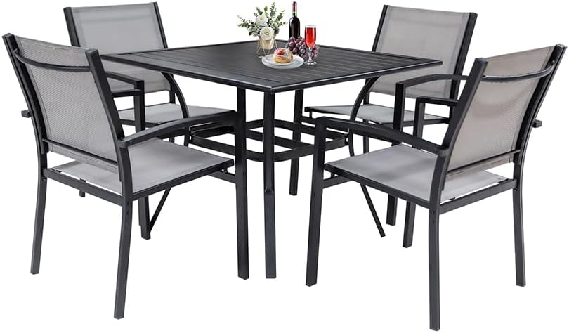 - 【Outdoor Patio Dining Set】This 5pcs set contains 1 square dining table & 4 patio chairs which can fit perfectly in your outdoor deck, backyard, balcony,, or near a pool.