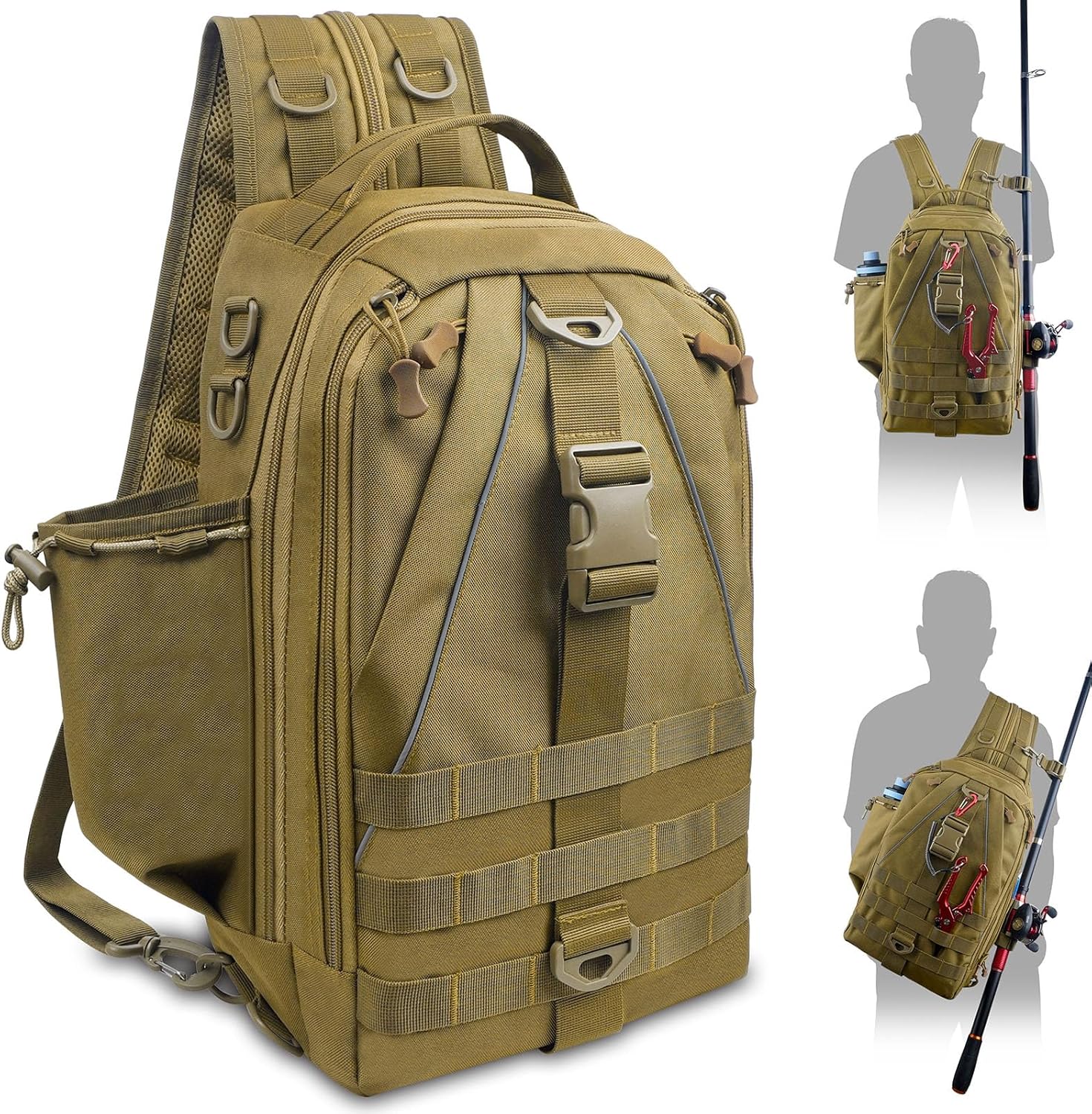 • 【INNOVATIVE DESIGN】This fishing tackle backpack is a bag with many possibilities. With its zipped-design, you can easily switch the bag to backpack or sling shoulder bag. A perfect tackle bag to meet your different needs according to various outdoors scenarios