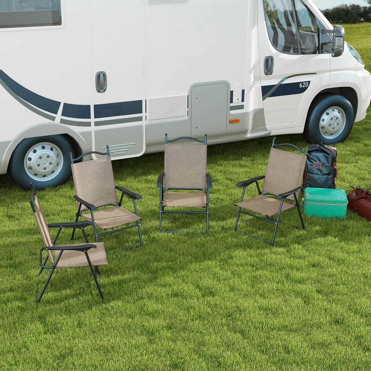 - Four Camping Chairs for Adults: Bring our folding camping chairs with you from the patio to the lawn to the beach. Embrace summer with up to 3 friends. This set includes four adult-sized outside chairs for comfortable seating anywhere.