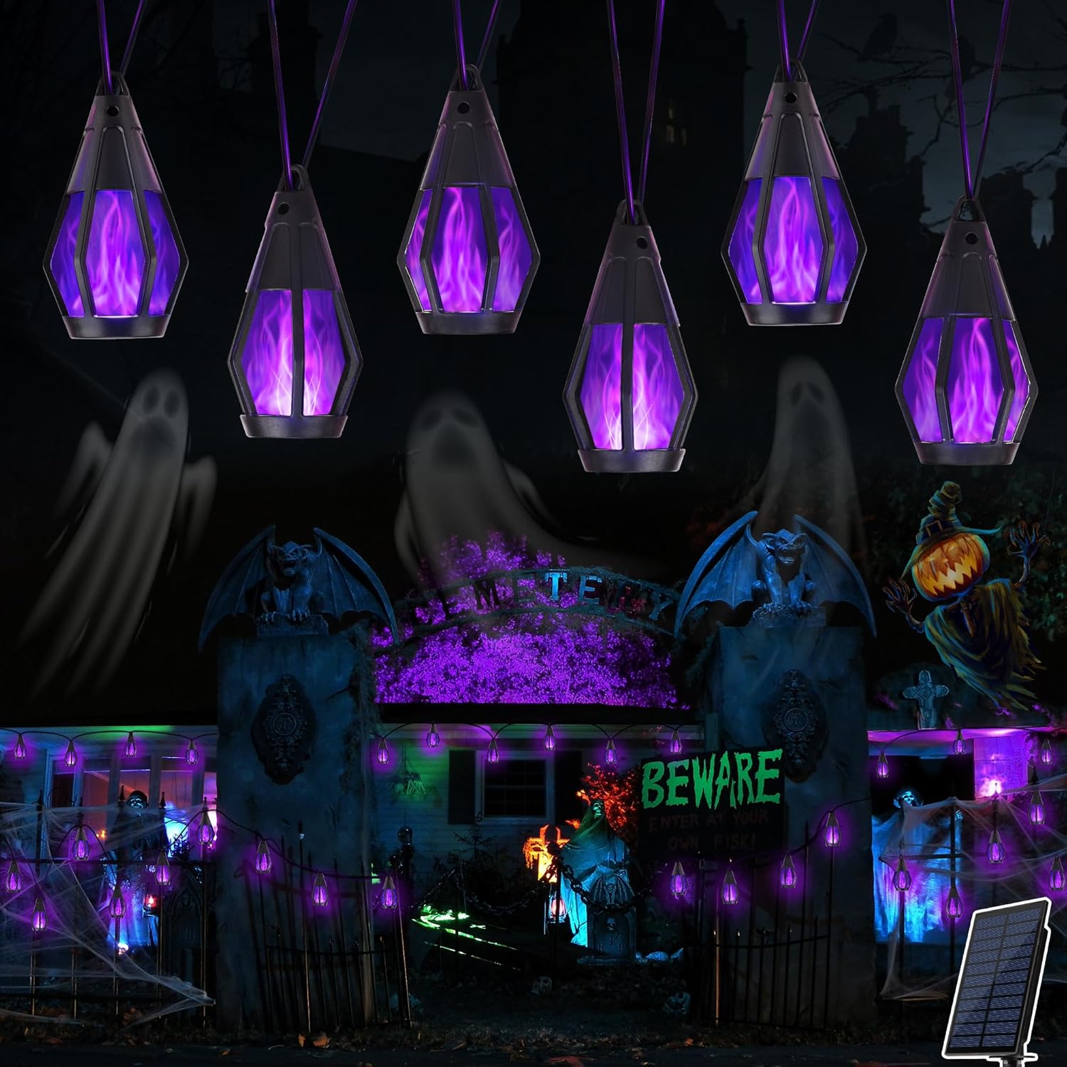 - IP65 Waterproof Halloween Flame Lights:The purple string lights are waterproof and designed to withstand light rain, great for outdoor indoor Halloween decoration. No need to worry of moisture or weather damage or short circuit by heat.